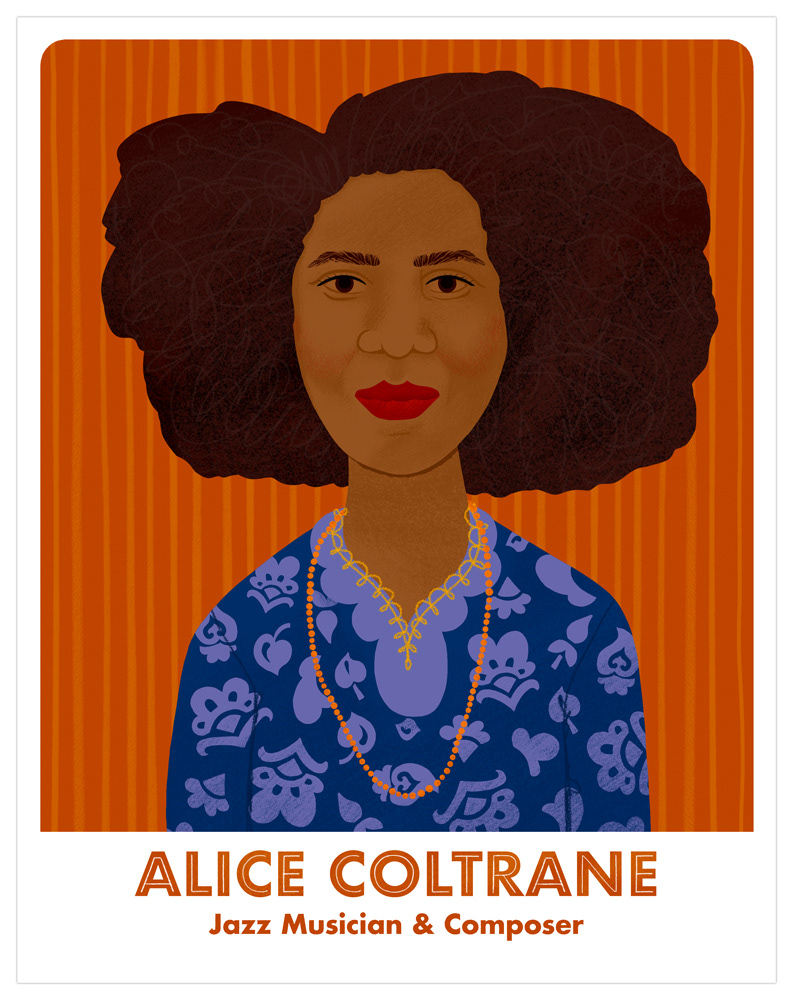 Illustrated portraits for 'Make Art That Sells; Redrawing Black History' course led by Lilla Rogers and Tamisha Anthony. I decided to make them into a series of collector's cards.