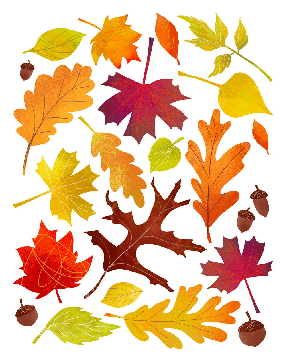 Illustrated icons in celebration of Autumn, minus the leaf raking.